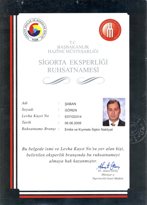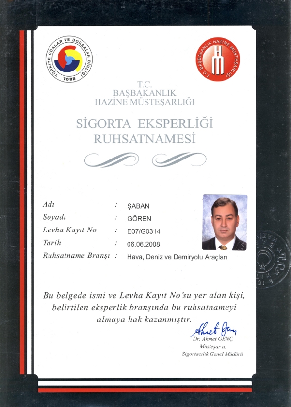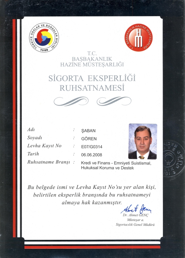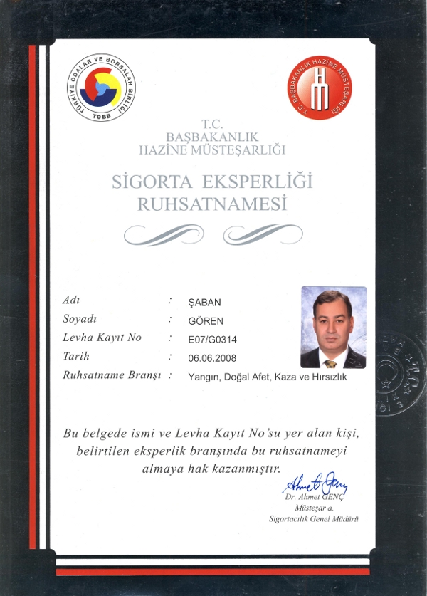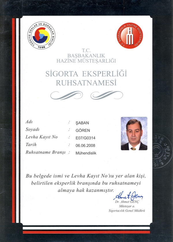 Kaza Sigorta Eksperliği Ruhsatnamesi